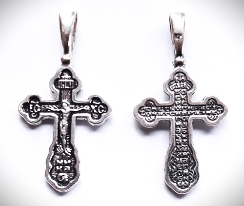 Krzyżyk srebrny. Próba 925 Wymiary 16 x 23 (32 z uszkiem) mm