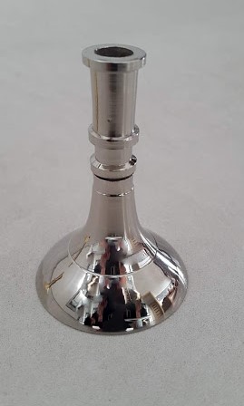 Wysokość: 6,4 mm Średnica podstawy: 43 mm Średnica otworu na świecę: 8 mm Świecznik mosiężny niklowany